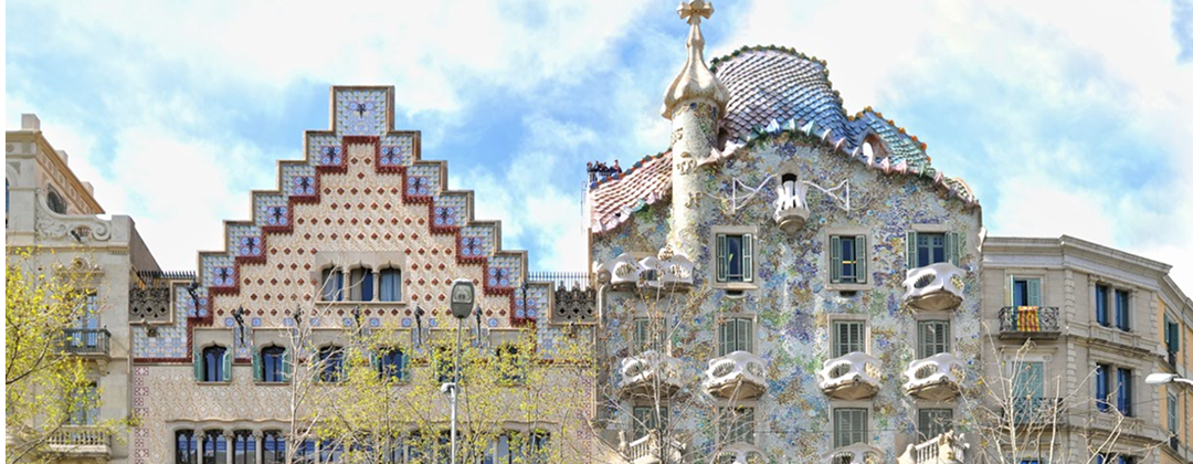 Casa Batlló is a building designed by architect Antoni Gaudí, the highest representative of the Catalan modernism, between 1904 and 1907. It is located at number 43 on Passeig de Gràcia in Barcelona, the wide avenue that crosses the modernist district of the Eixample. It was commissioned by Josep Batlló i Casanovas, a textile entrepreneur linked to the Godó family by marriage. Its most well-known part is the facade, considered one of the most creative and original works of the architect; it combines stone, wrought iron, glass brickwork and polychrome ceramics.