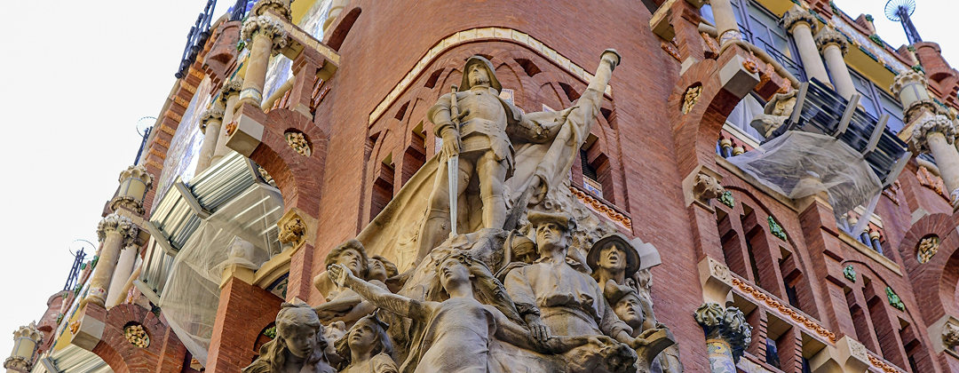 “Palau de la Música Catalana” is a music auditorium located on the street “Sant Pere més Alt” in the district of La Ribera de Barcelona. It was designed by the Barcelona’s architect Lluís Domènech i Montaner, one of the top representatives of Catalan modernism. The construction was carried out between the years 1905 and 1908, with solutions in the structure very advanced with the application of large walls of glass and the integration of all the arts, sculpture, mosaics, stained glass and forge. The building, headquarter of the “Orfeón Catalán” was founded in 1891 by Lluís Millet and Amadeo Vive.
